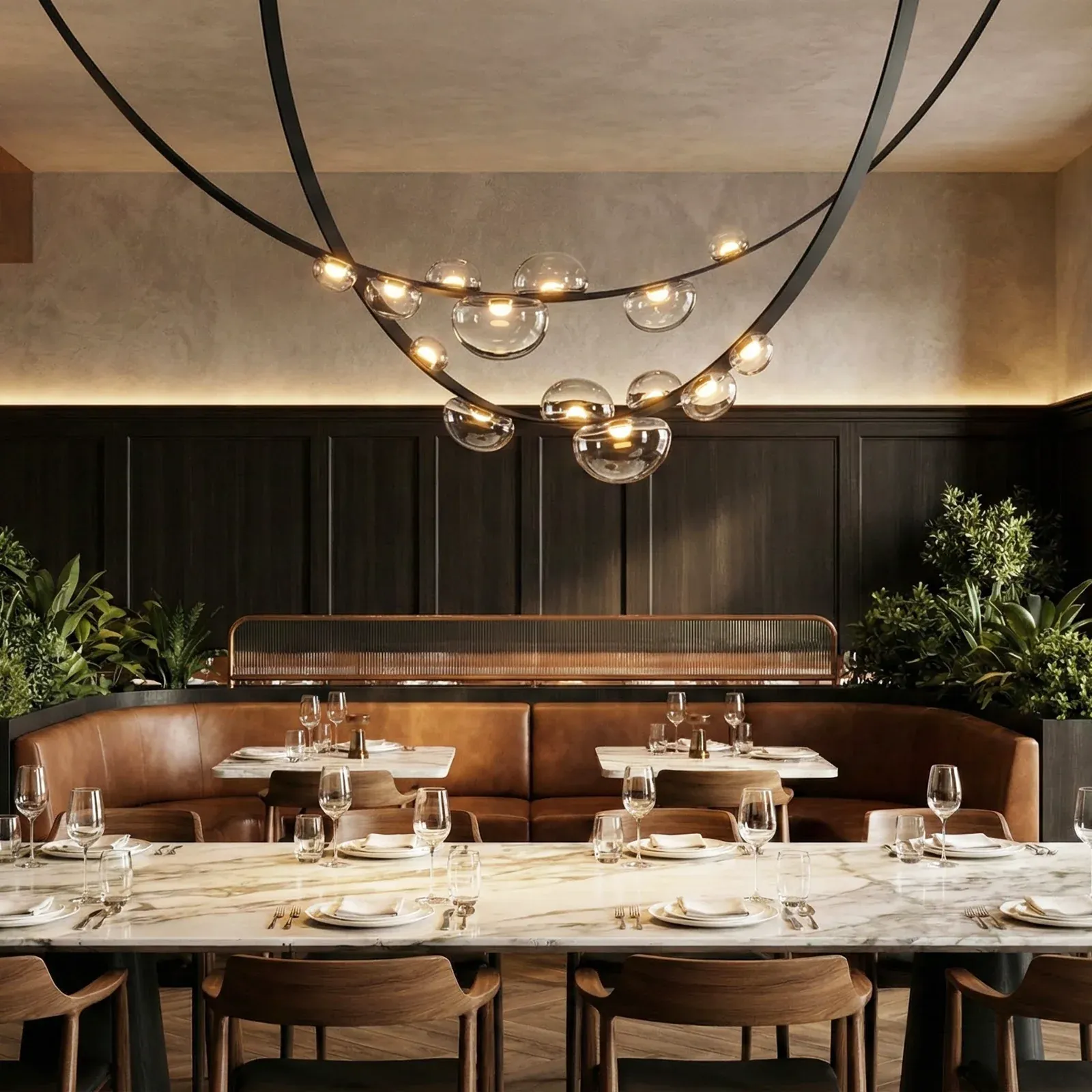 Crystal Glass & Leather Pendant Lamp