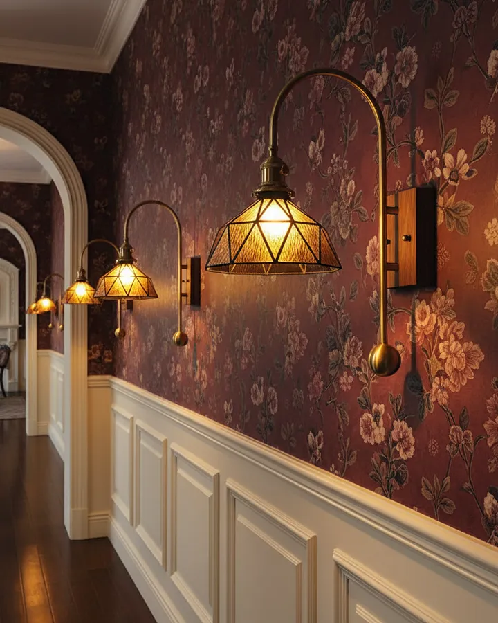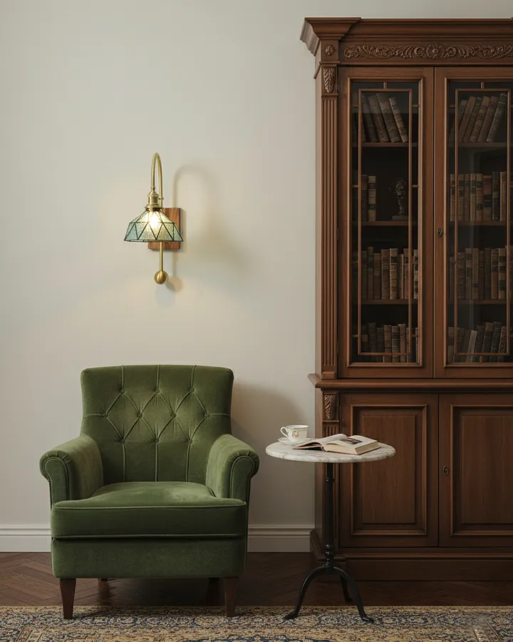 Vintage wall lamp, light luxury glass, living room sofa, hallway, antique style